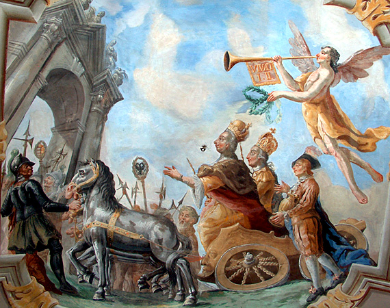 Stropná maľba zobrazujúca príchod cisárovnej Márie Terézie do brán mesta dala tejto miestnosti aj názov. V štyroch stenách osemuholníka sú vstavané skrine so zamaskovanými dverami, nad ktorými vidíme výjavy z korunovácie Františka Lotrinského, pontifikát pápeža Klementa IV., korunováciu Jozefa II. a Márie Terézie.