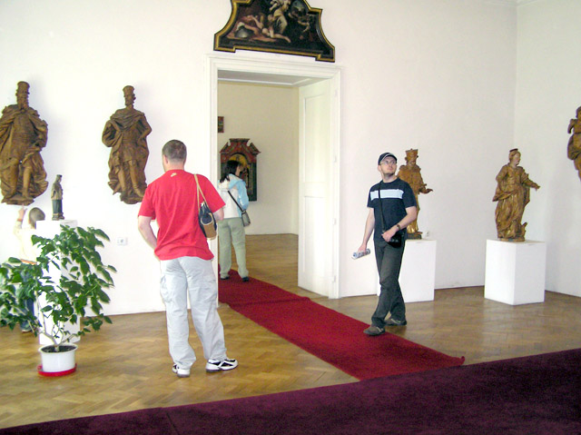 Na poschodí pokračuje prehliadka v miestnostiach venovaných sakrálnemu umeniu v zbierkach múzea. Ikony pochádzajú z pravoslávneho kostola v Runine a zaraďujeme ich do neskorobarokového umenia 1. polovice 18. storočia v tzv. haličsko - karpatskej oblasti.. Dopĺňajú ich ešte ikona sv. Mikuláša z Dary a Bohorodička z Novej Sedlice. Olej na dreve predstavuje "Poslednú večeru" z obdobia okolo roku 1770 a pochádza z kaplnky kaštieľa. Dve olejomaľby na plátne z legendy o Samsonovi sú z 18. storočia. Plastiky sv. Štefan a sv. Ladislav pochádzajú z rímsko-katolíckeho kostola v Topoľovke.