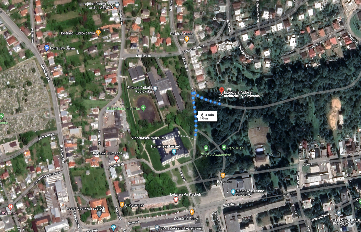 Neodmysliteľnou súčasťou dedinskej architektúry a koloritu obce boli kováčske dielne. Jedna na ukážku bola prevezená z Nechvaľovej Polianky. Je to obdĺžniková zrubová stavba rozmerov 6 x 3 m s dielňou s prístreškom. Špáry zrubu vyplnené hlinou, krytina dosková. Inventár dielne zodpovedá jej poslaniu. Ohnisko s kováčskym mechom (dúchadlom), kovadlina, rôzne typy kladív, klieští a vybíjakov tvorili základnú výbavu dielne. Pod prístreškom sa podkúvali kone, v dielni sa vyrábali podkovy a rôzny poľnohospodársky inventár (pluhy, plužňatá, brány, motyky a pod.).