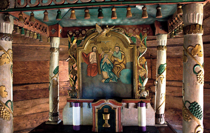 Dominantou každej obce bol kostol, vybudovaný spravidla na vyvýšenom mieste v teréne. Drevený kostolík z Novej Sedlice je medzi všetkými objektmi v skanzene je najstarší a do areálu skanzenu bol premiestnený v roku 1974 ako prvý. Nad vstupom do kostola je na drevenom tráme vyrytý dátum jeho postavenia, rok 1764. Pre našu oblasť je charakteristický trojpriestorový východokarpatský typ sakrálnej stavby so zrubovou konštrukciou. Trojpriestorovosť zvonku zdôrazňuje trojica veži nad centrálnymi priestormi s drevenými kupolami. Jeho jednoduchý vzhľad vzbudzoval dôveru, priťahoval veriacich vo chvíľach odpočinku po ťažkej týždennej práci. Kostolík mal vyjadrovať skutočnosť, že je sídlom Boha, ku ktorému s pokorou sa obracali nielen pastieri, ale aj drevorubači a roľníci, starci i mládež. Všetci tu hľadali porozumenie, lásku a šťastie. Dnes tento skvost ľudovej architektúry každoročne obdivujú tisíce návštevníkov múzea, a to nielen jeho vonkajší vzhľad, ale hlavne jeho zreštaurovaný ikonostas a oltár.